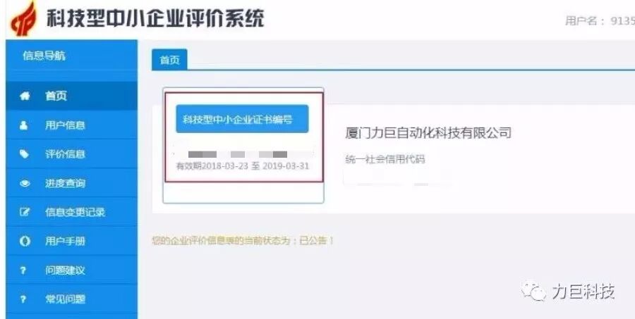 坚持自主研发的力巨科技,除了是国家高新技术企业外,于2018年又取得了科技型中小企业编号入册。