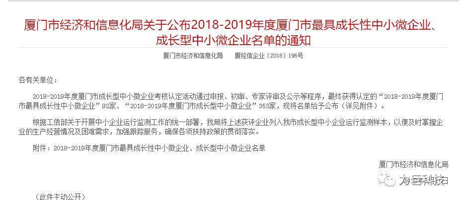 由厦门市金融工作办公室、厦门市企业上市工作领导小组办公室组织评选的“2018-2019年度厦门市成长型中小微企业”入选企业名单正式公布,力巨科技再次光荣入选!