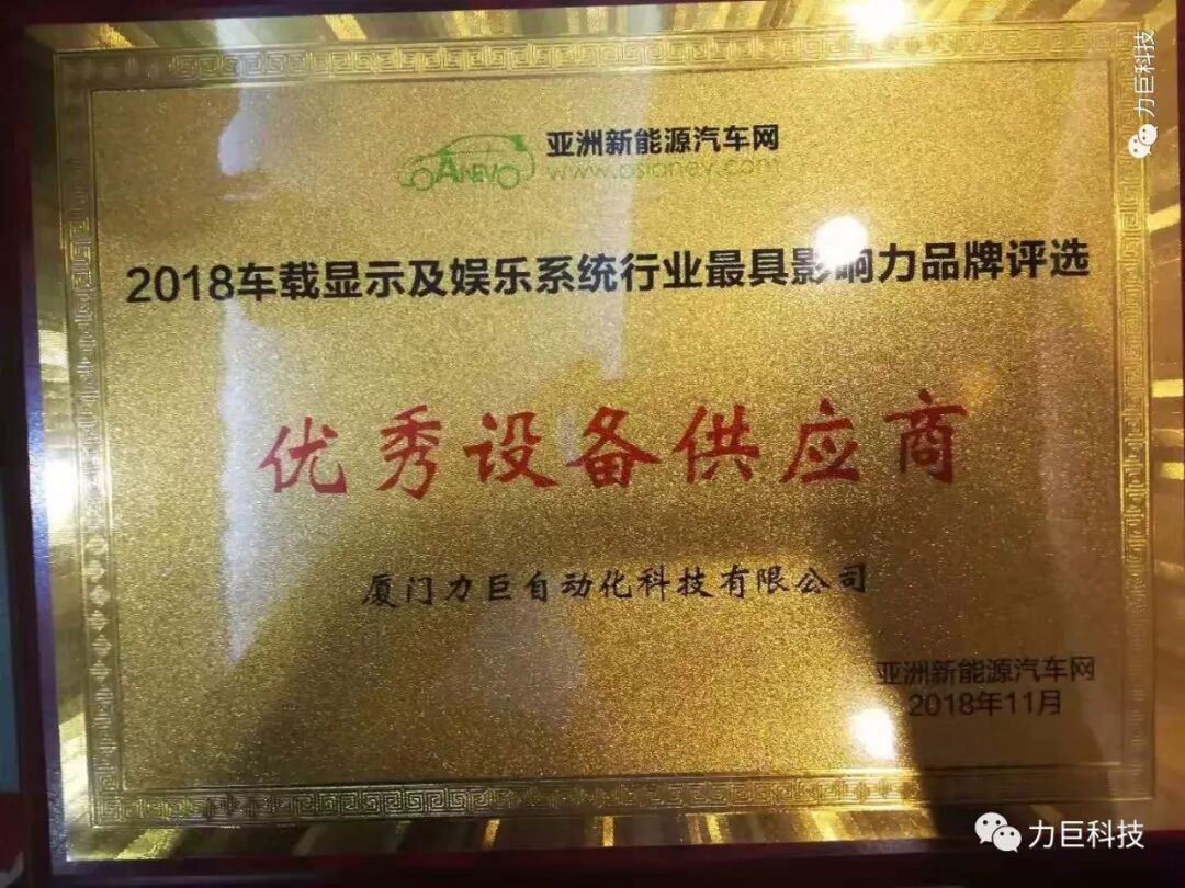 力巨科技荣获“优秀设备供应商”