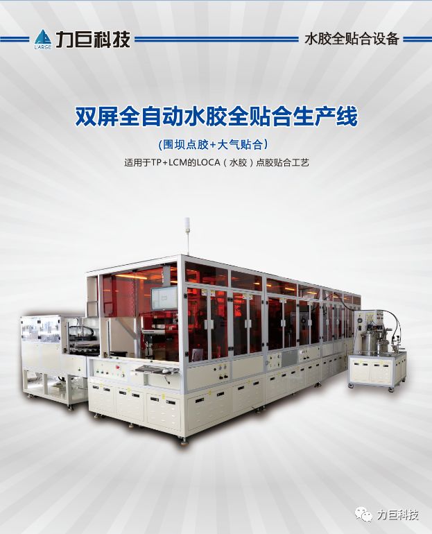 经过近十年不断研发及技术改进,力巨科技推出LOCA(水胶)全贴合全制程解决方案,提供从水胶贴合到后道UV光固的整体解决方案。