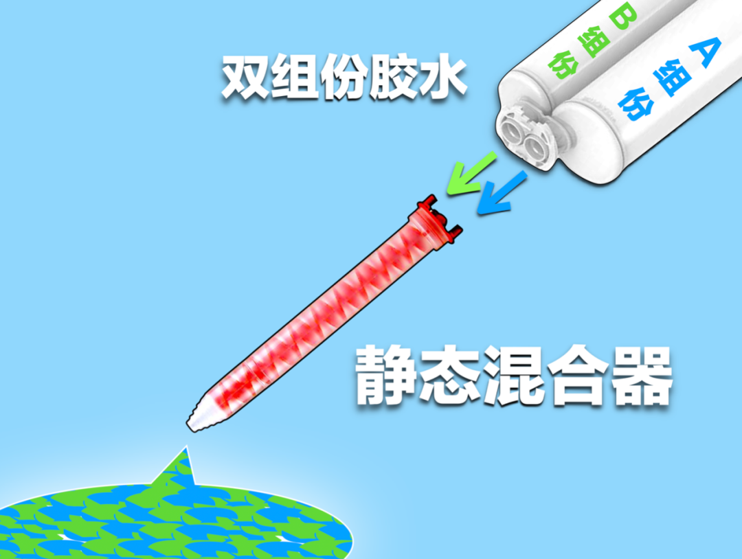 因为双组份胶水的原理是主剂和固化剂接触即开启交联反应,所以在混合器内部,AB两个组份的固化进程是时刻都在发生的。