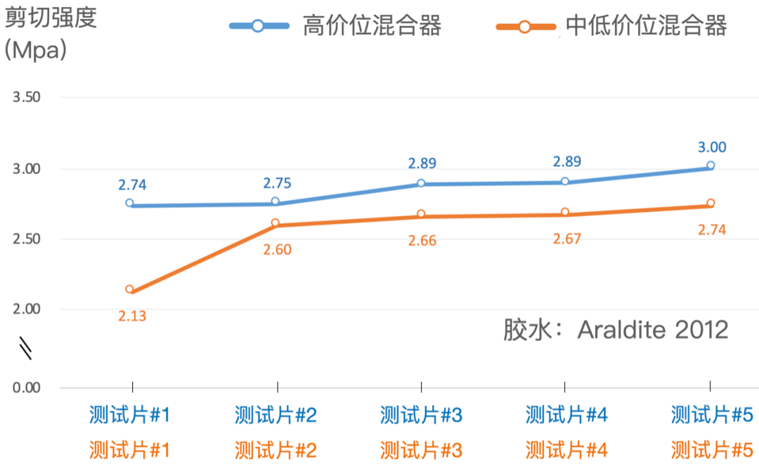 不同价位混合器,胶水Araldite 2012的剪切强度