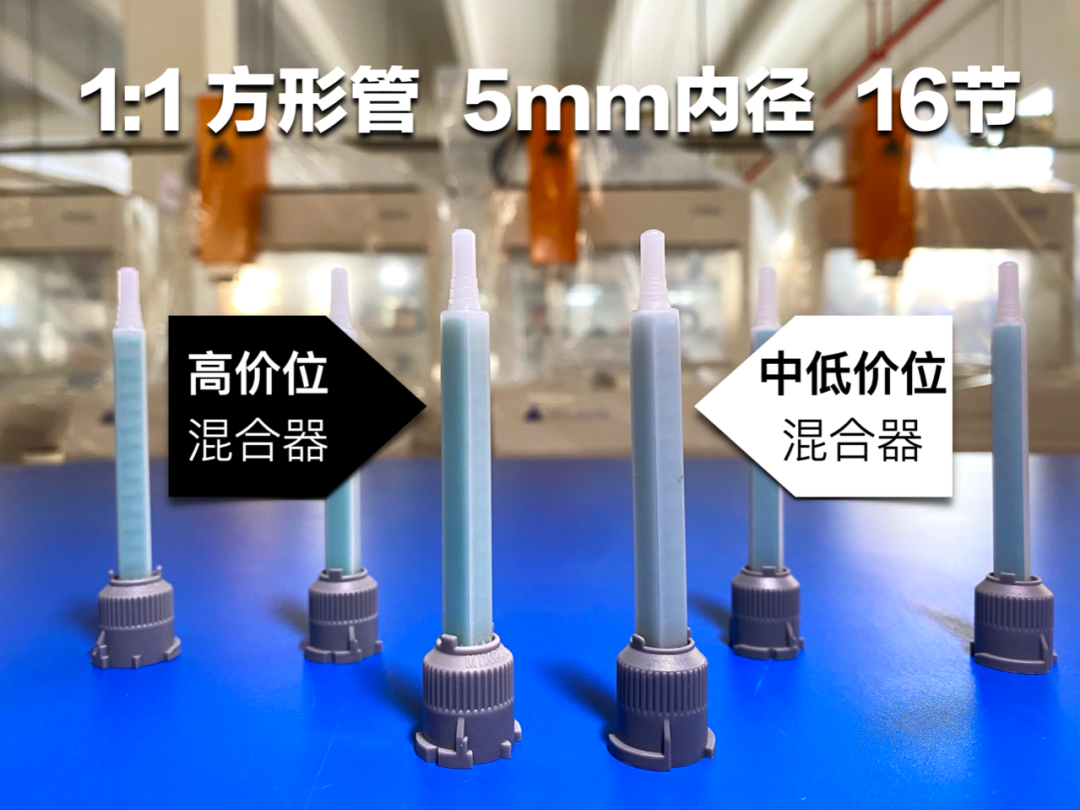 这种方形混合器上市时间不长,是苏尔寿公司发明的最新一代混合方案,卖点就是大大提高了胶水的混合效率!