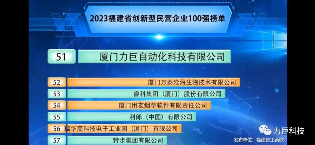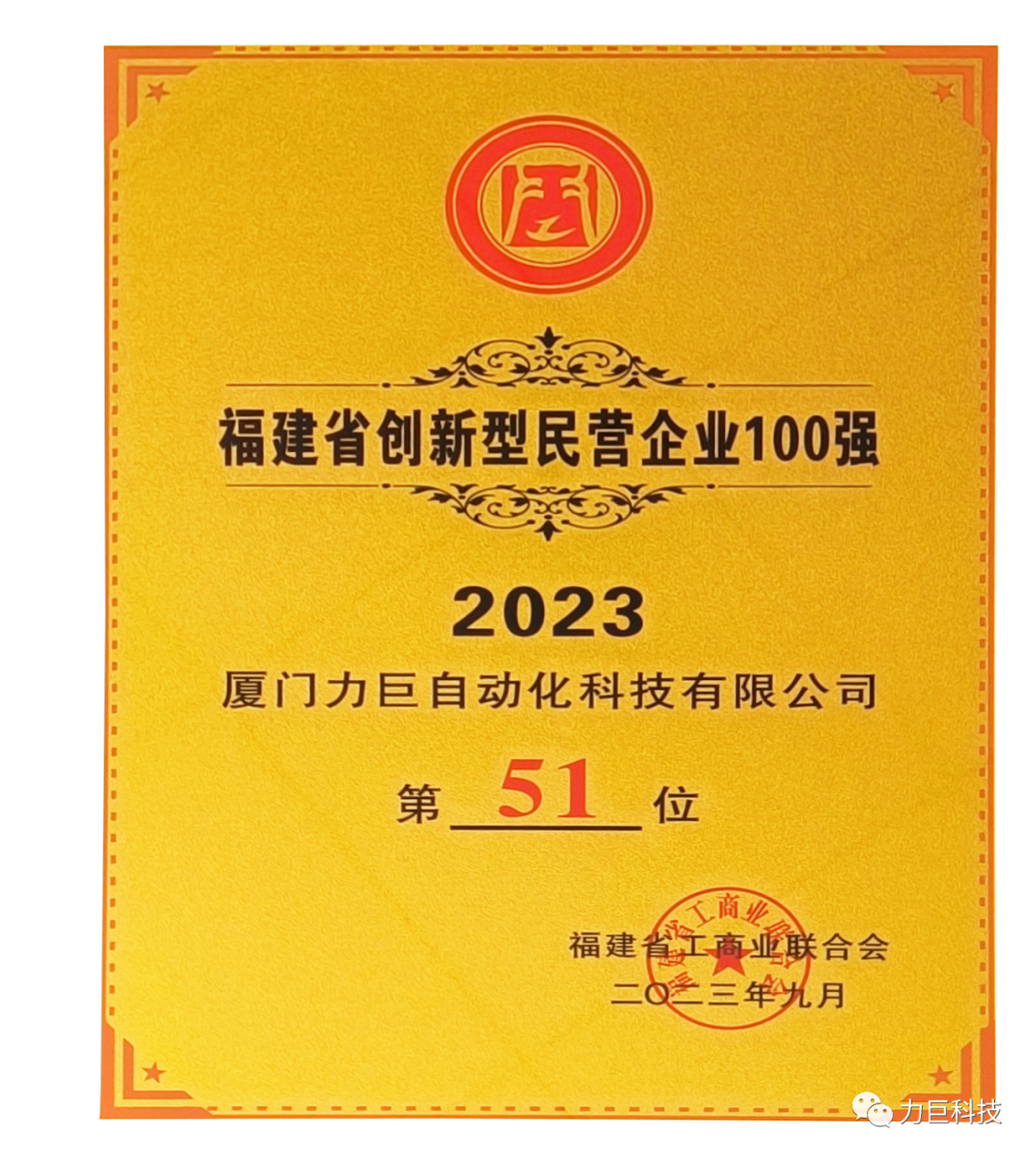 喜报!力巨科技入选2023“福建省创新型民营企业100百强”榜单